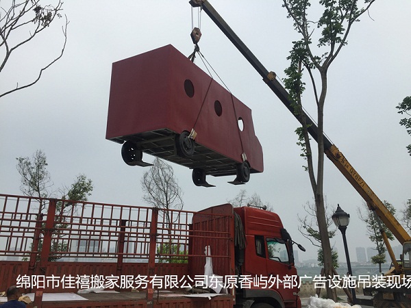 綿陽市佳禧搬家服務有限公司之東原香嶼外部廣告設施吊裝安裝現(xiàn)場