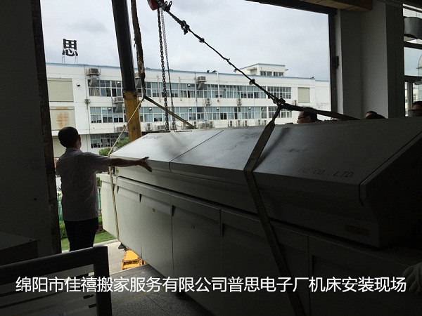 綿陽市佳禧搬家服務有限公司:綿陽設備搬運安裝之普思電子廠機床吊裝安裝現(xiàn)場實拍